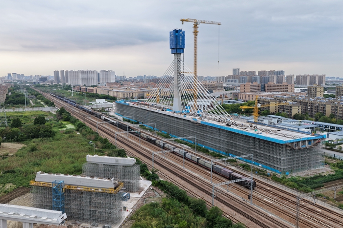 “閉環戰”攻克關鍵節點 市區快速路涉鐵段轉體橋主塔封頂