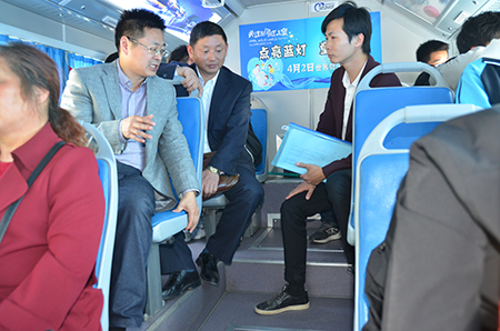 何宇健一行首先乘坐了游1路公交車開(kāi)展現(xiàn)場(chǎng)調(diào)研。在公交車上,何宇健親自體驗(yàn)了軟皮座椅的舒適度,了解了車廂內(nèi)部的配置,聽(tīng)取了乘客對(duì)游1路的評(píng)價(jià)。