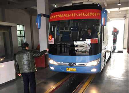 為全力保障黨代會順利進行,國鴻汽運公司高度重視,精心挑選了15輛47座以上全新旅游大巴車和15名專職駕駛員,專門印發了《黨代會接待任務工作須知》,制作了黨代會統一標語張貼于車頭醒目位置,組織駕駛員參加安全和服務禮儀培訓,切實提高駕駛員的安全意識和服務意識,確保全體駕駛員以良好的精神面貌、熱情的服務態度,認真做好本次接送服務工作。同時,公司還對所有參與接送任務的大巴車進行了全面系統的安全檢查和清潔保養。此外,公司還安排專人配合做好現場指揮和車輛調度工作。