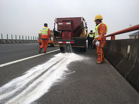 1:20,事先裝好融雪劑的車輛開始出發(fā)。1:40,施救車輛到達(dá)積雪橋梁有序撒鹽除雪。2:30,除雪作業(yè)完成,積雪融化,橋梁恢復(fù)正常通行。