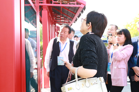 25日上午,游3路文化示范線的雙層巴士載著來自各地的參會代表,前往紅船學院公交首末站參觀。被中共嘉興市委宣傳部聘為嘉興市“紅船宣講團”之“好聲音宣講團”成員的李晨,作為公交黨員志愿者,為代表們做全程講解。一進入公交首末站,濃郁的紅色文化氣息吸人眼球,代表們不自覺地停下腳步駐足觀看,只見公交站務房、候車亭、始發線路和場站其他布設均使用了紅色文化元素,并設有黨員、群眾學習教育基地和暖心驛站,使大家充分感受到了紅船起航地嘉興的獨有文化特色和魅力。微型首末站不僅設有站務室和休息室,而且功能設備齊全,配置了休息座椅、飲水設施、便民箱、公交IC卡補登機、充電設備、雨具、微波爐等便民設施,放置了黨建書籍、報刊等提供黨員群眾借閱,在向市民乘客、戶外勞動者和駕駛員提供周到的便民服務的同時,打造了別具一格的黨員群眾學習交流的紅色文化陣地。這些舉措得到了代表們的充分認可。