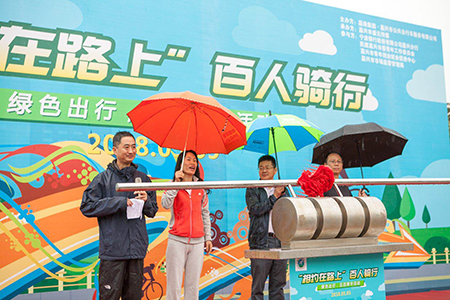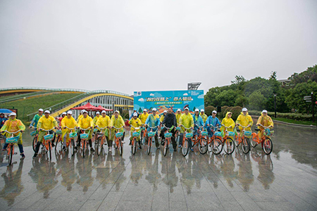 雖然活動當天風雨交加,但完全阻擋不了參與者們的熱情。來自寧波銀行嘉興分行、民建嘉興市委青年工作委員會、嘉興市青年創業就業促進中心、嘉興市市場監督管理局的職工整裝待發。啟動儀式結束后,大家沿著凌公塘公園騎行一圈,在雨中,職工們用一道青春靚麗的騎行風景線詮釋健康、低碳、綠色的生活主張。