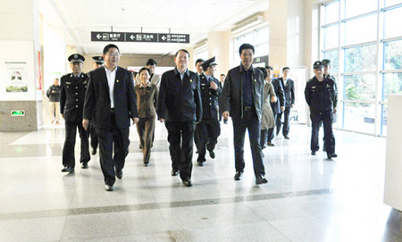 11月6日,市委常委、經(jīng)濟(jì)開(kāi)發(fā)區(qū)黨工委書(shū)記陳利眾帶領(lǐng)相關(guān)部門(mén)負(fù)責(zé)人到汽車(chē)客運(yùn)中心,督查國(guó)鴻汽運(yùn)公司安保工作。集團(tuán)公司董事長(zhǎng)沈蘭冠、副總經(jīng)理許海云,國(guó)鴻公司相關(guān)負(fù)責(zé)人陪同。