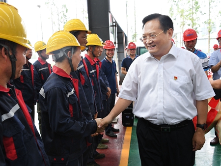 7月30日下午,市委書記張兵深入市區快速路環線工程(一期)土建1標段施工工地,看望慰問堅守在高溫一線的建設工人。市人大常委會副主任朱海平,市委副秘書長、市委辦公室主任趙建明,市總工會黨組書記、常務副主席嚴吉丹,項目推進辦主任畢志強、副主任許海云,集團公司董事長李云鴻、總經理張富標、副總經理李建國等陪同慰問。