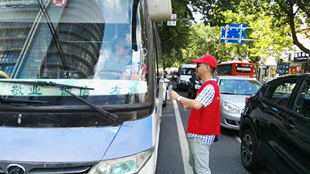 “師傅,請禮讓斑馬線,做文明有禮南湖人!”“師傅,請文明出行,讓我們以最美的姿態(tài)迎接G20!”兩家基層單位的志愿者頭戴小紅帽、身穿紅色馬甲,冒著高溫酷暑,向過往司乘及行人發(fā)放宣傳資料,號召市民安全駕駛,禮讓斑馬線,文明過馬路、排隊守秩序、禮儀待賓客……引導市民踐行文明出行、安全出行的理念,做一個傳播文明、踐行文明嘉興人,以最美好姿態(tài)迎接G20杭州峰會的到來。