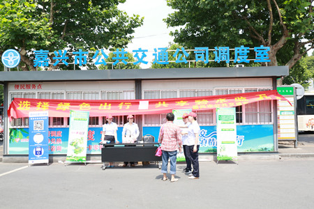 為擴(kuò)大宣傳效果和影響力,公交公司專門制作了宣傳展架和橫幅,并在嘉興火車站公交樞紐站開(kāi)展現(xiàn)場(chǎng)志愿服務(wù),向廣大市民乘客宣傳綠色出行,倡導(dǎo)優(yōu)選公交,并現(xiàn)場(chǎng)提供售卡、網(wǎng)上充值及咨詢服務(wù)。