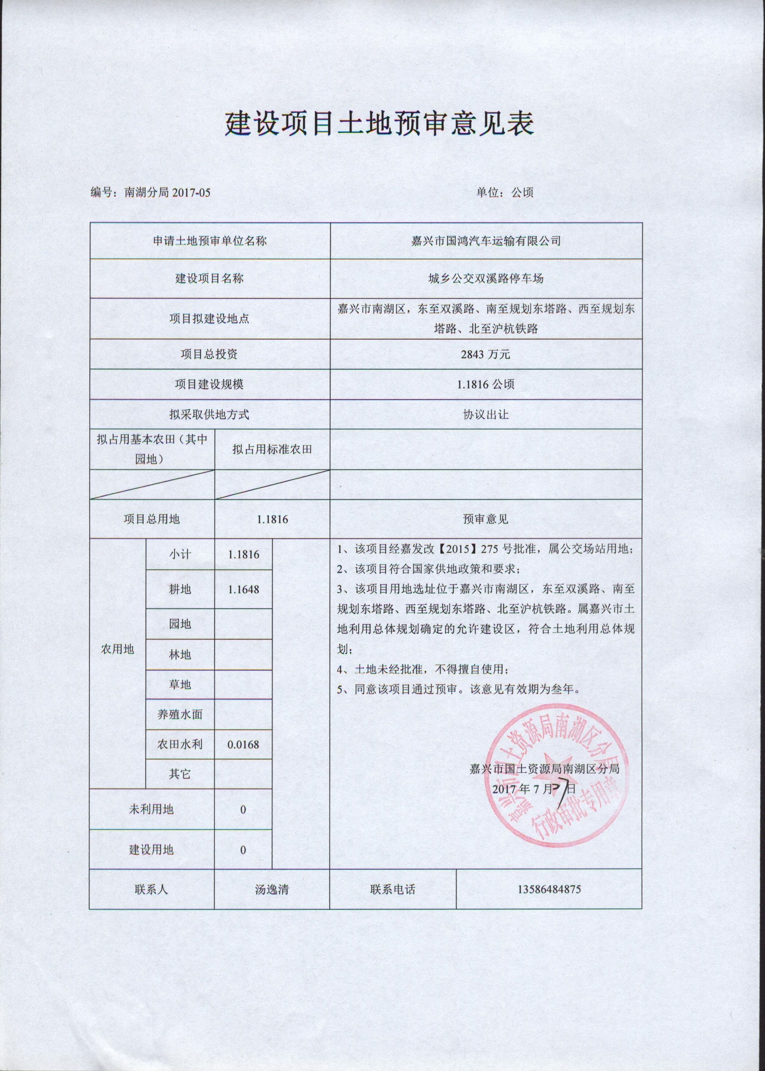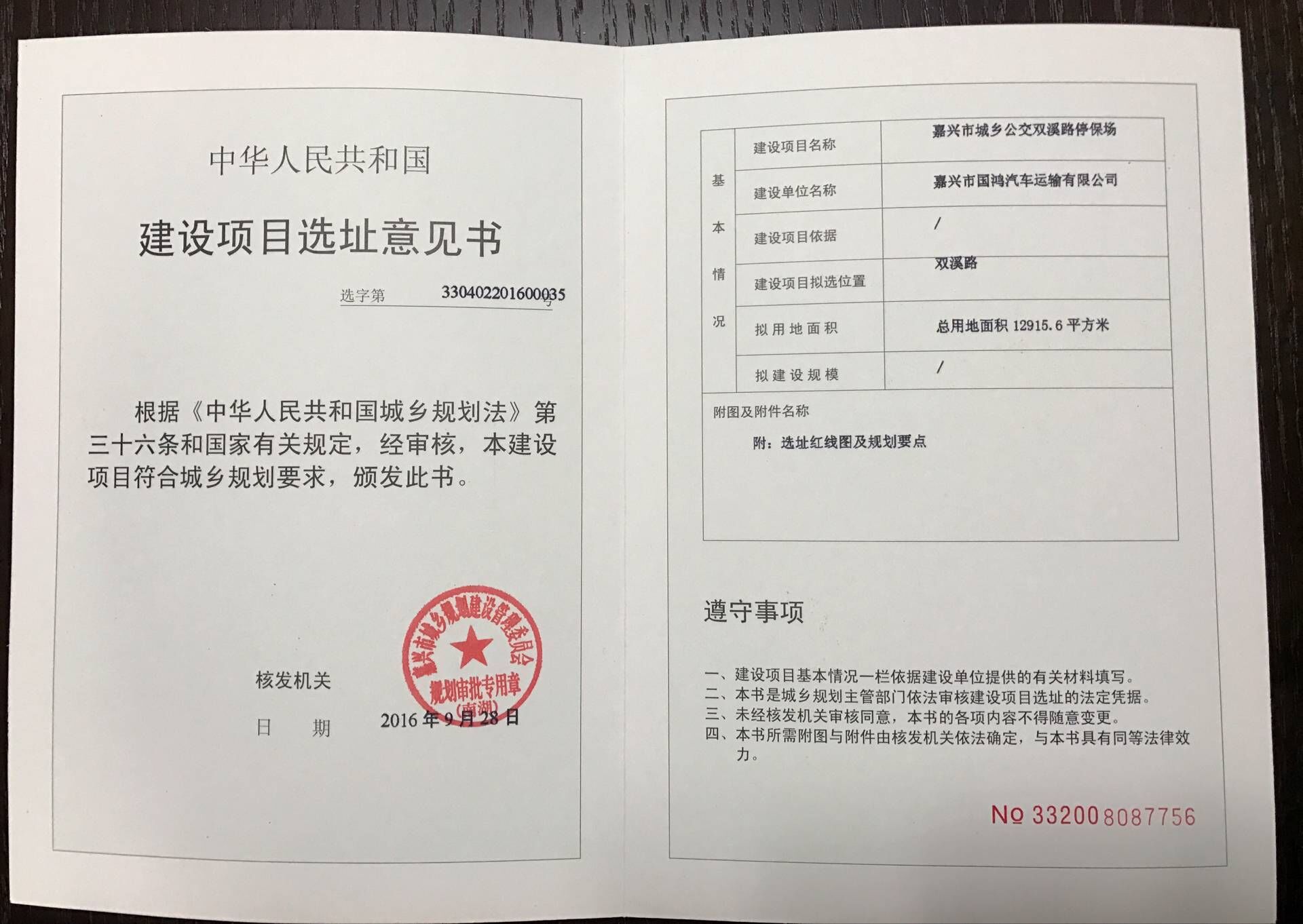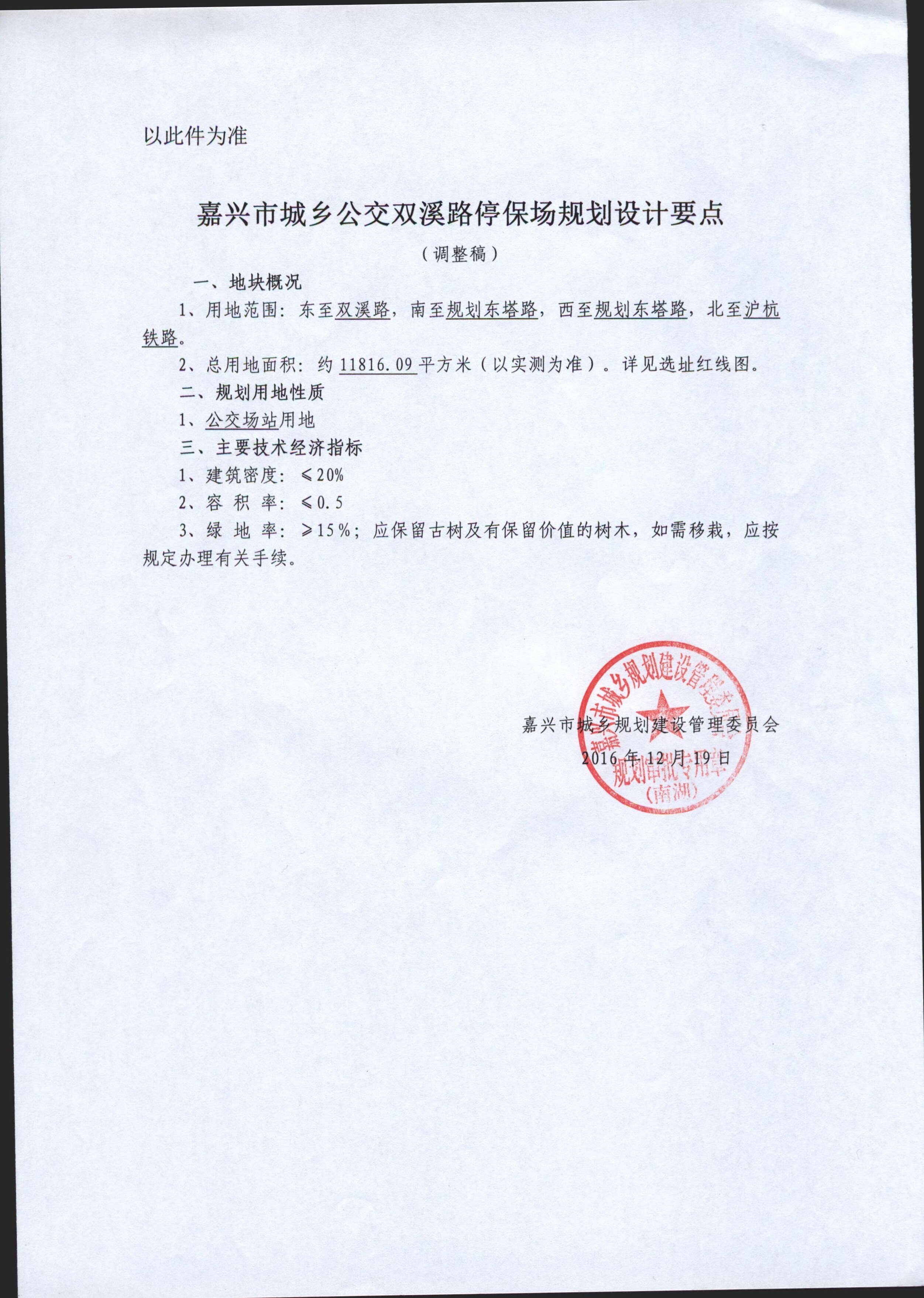 嘉興市城鄉公交雙溪路停車場建設項目選址意見書